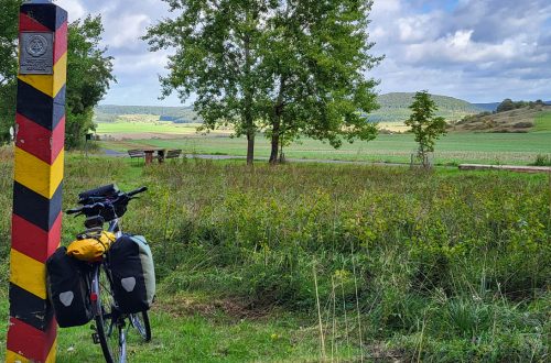So nach und nach schleichen sich bei mir ein paar Blessuren ein. Meine Unterhose reibt mit dem Beinabschluss am Schenkel bis es brennt und der kleine Fußzeh rechter Hand – sorry – rechten Fußes, meldet eine werdende Blase an. Da kommt die Bank an der Kreuzung genau richtig. Der Fußzeh bekommt ein Pflaster Die wunde Stelle am Bein reibe ich ordentlich mit Handcreme ein. Das brennt erst eine Weile höllisch, dann ist der Schmerz für den Rest des Tages weg.