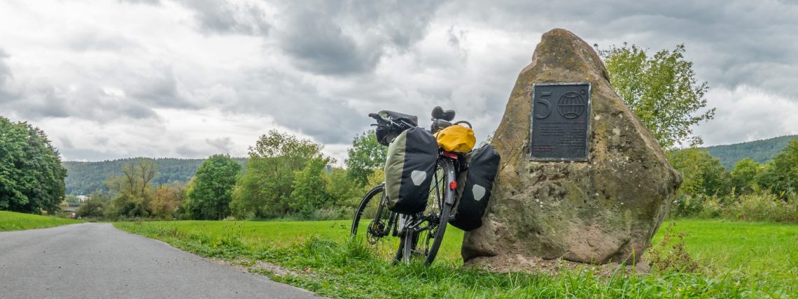 Für die letzten Kilometer begleitet mich nun der Main. Ein obligatorischer Fotostopp auf dem 50. Breitengrad muss jetzt noch sein. Auf diesem Breitengrad liegen Ulaangom in der Mongolei, Winnipeg in Kanada und auf der anderen Mainseite, mein nächster Campingplatz in Lohr. Noch einen großen Bogen über die Brücke und an der Altstadt von Lohr vorbei, dann stehe ich an der Rezeption.